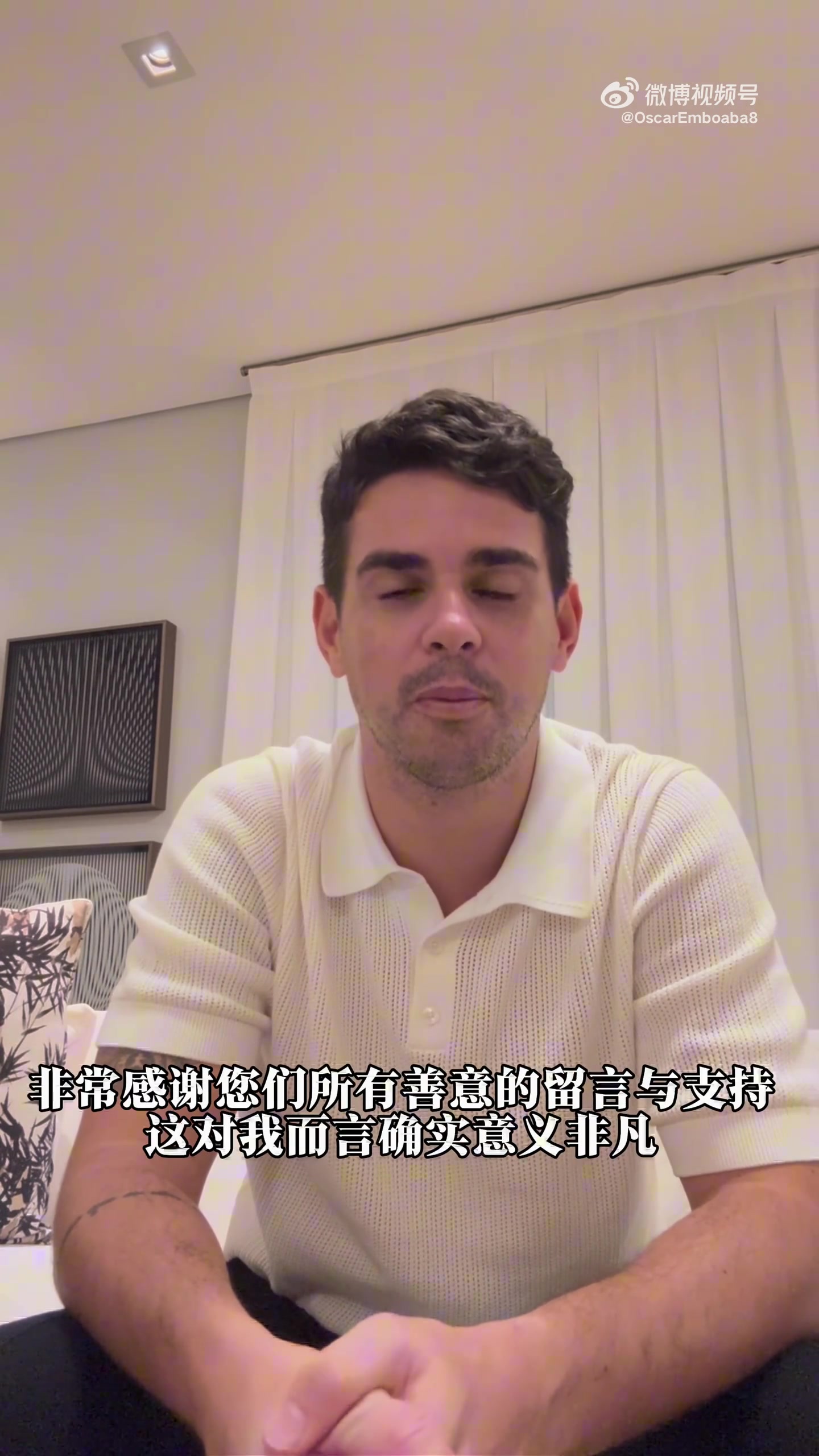 奥斯卡向中国球迷报平安:我康复得很好,很希望回来中国见到大家